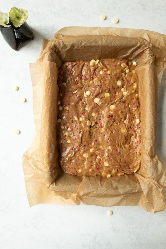 Cookie Bars mit Himbeeren und weißer Schokolade