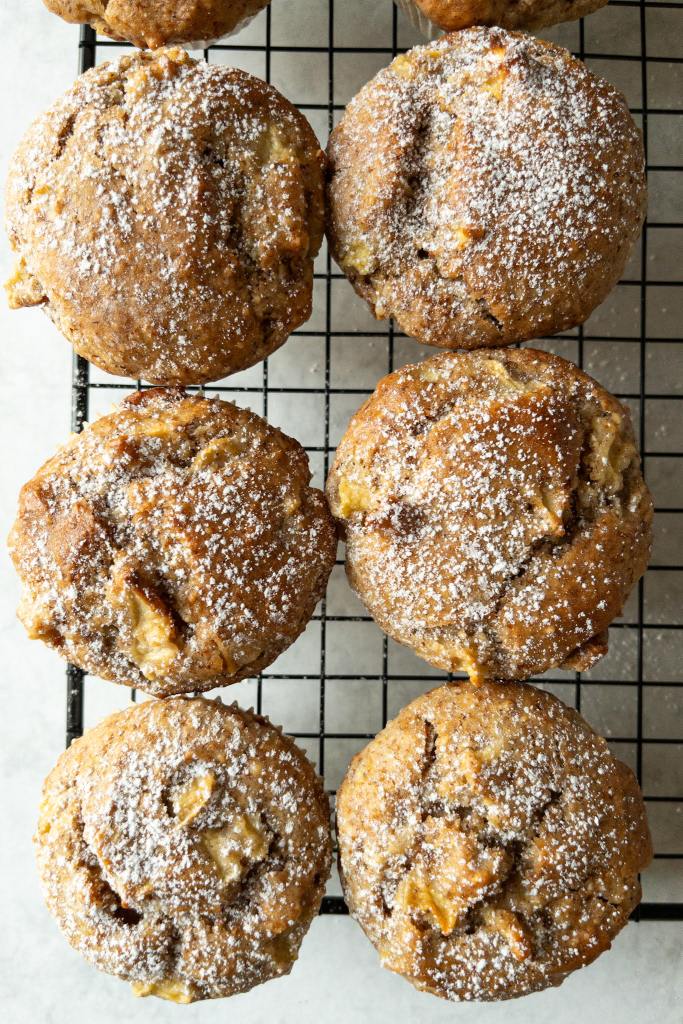 - Danach die veganen Apfel-Mandel Muffins noch in der Form für 10 Minuten auf ein Gitter stellen; danach kann man sie rausnehmen und endgültig auf dem Gitter abkühlen lassen.