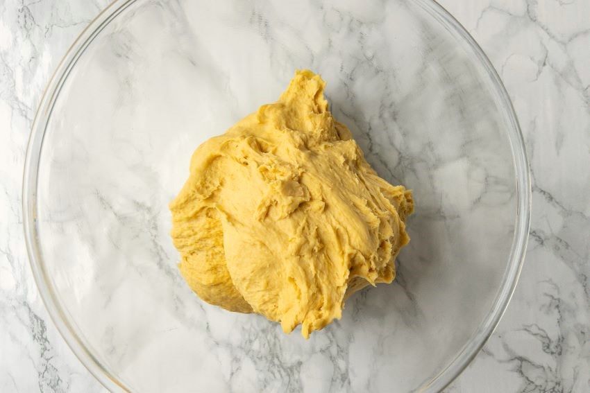 - Das Endprodukt ist ein geschmeidiger Teig, der sich beim Rühren deutlich vom Schüsselrand ablöst.